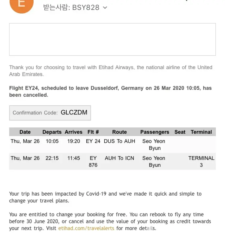 And unfortunately, my flight company ETIHAD cancelled my flight reservation.
