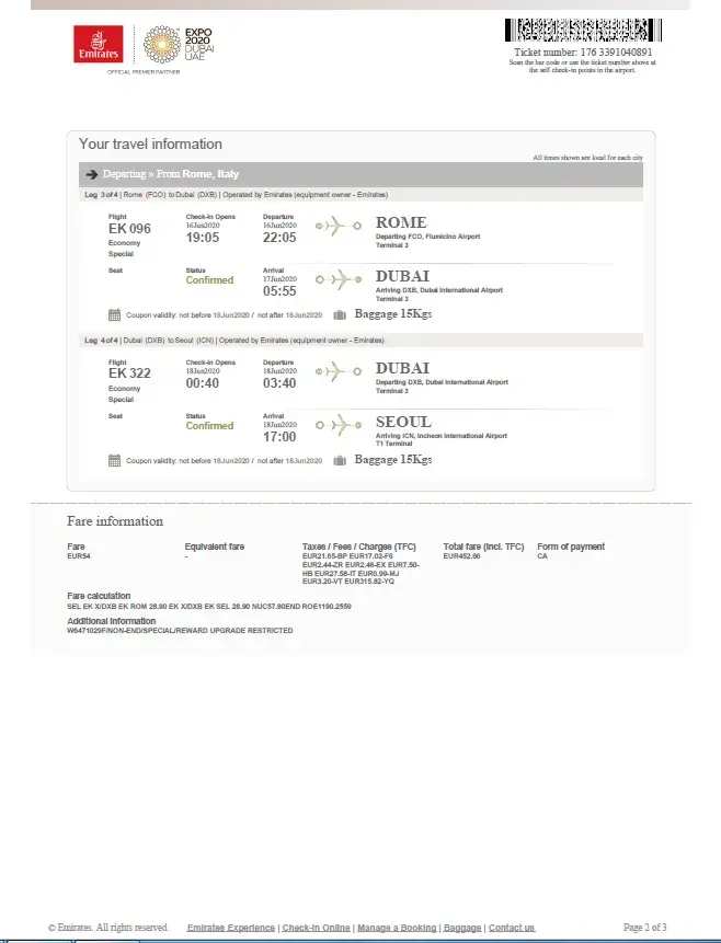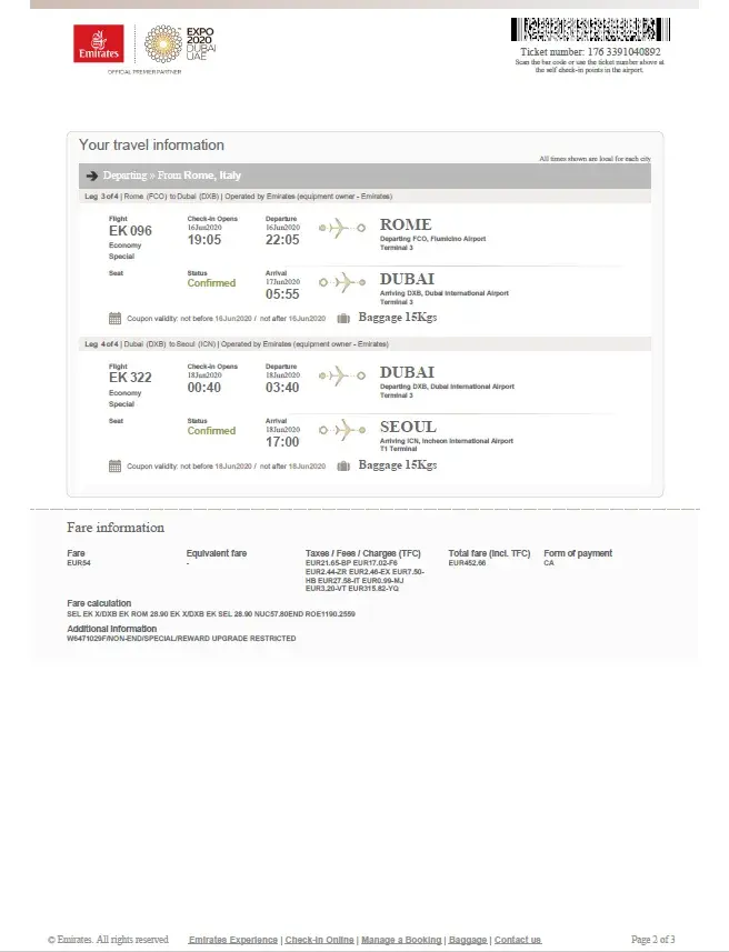 Hello? I am the person who reserved the plane ticket through Travelgenio. But the reason why I sent you this message is to cancel the plane tickets and get a refund because of bad situation by COVID-19. I reserved 2 tickets from Incheon to Rome via Dubai on June 1 and from Rome to Incheon via Dubai on June 18. The reservator's surname is MA and reservation code is JK4FXL. Originally, I booked a plane ticket for a trip to Italy, but I decided to cancel the trip after seeing very serious situation in Italy due to the COVID-19. Even if the corona virus situation end before June 1, I thought that there would be a very inappropriate atmosphere to travel due to the aftermath of the corona virus.