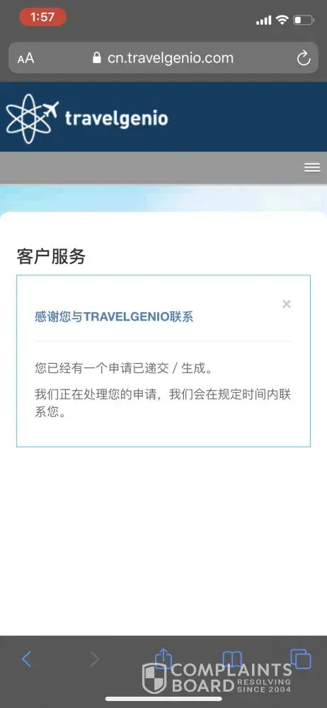 Now I can't get through to Travelgenio on the phone, every time after being put on hold, the call gets disconnected. They do not reply to emails or messages sent through their customer service form online. Ticket #3271995 and #3312945.