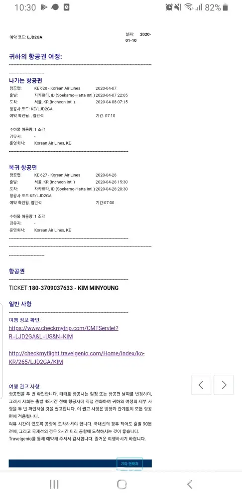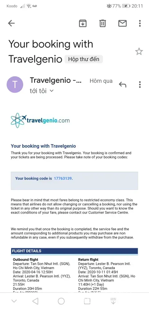 Reservation code : [protected] (travelgenio), KLPHOV (Amadeus)