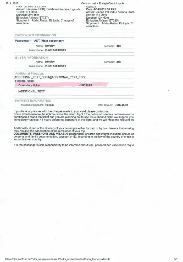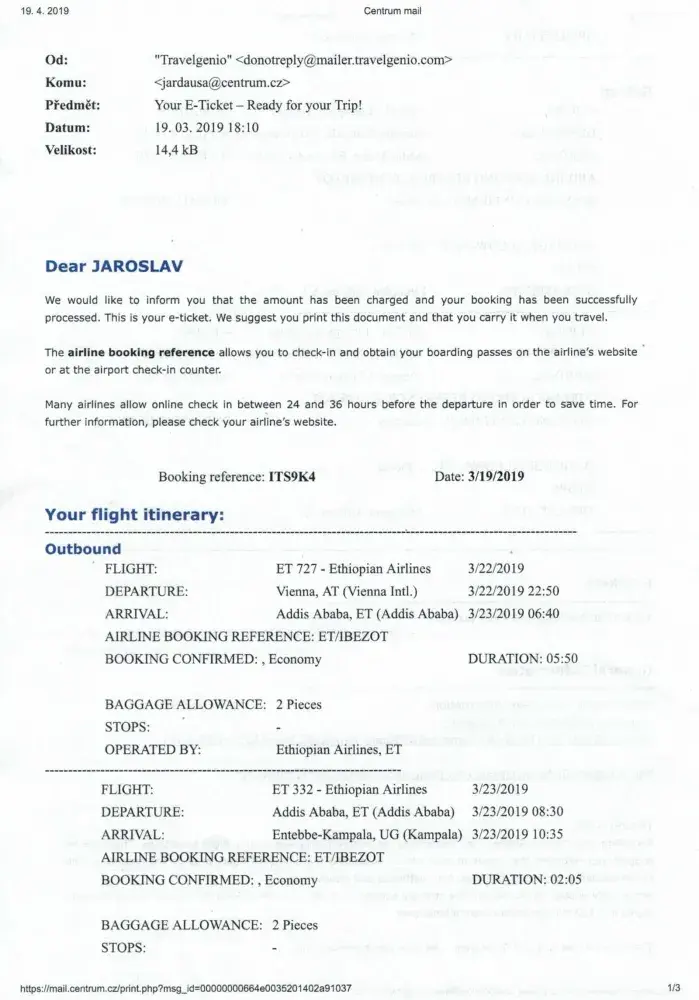 I purchased a ticket from Perth to Nairobi using the booking site Travelgenio.