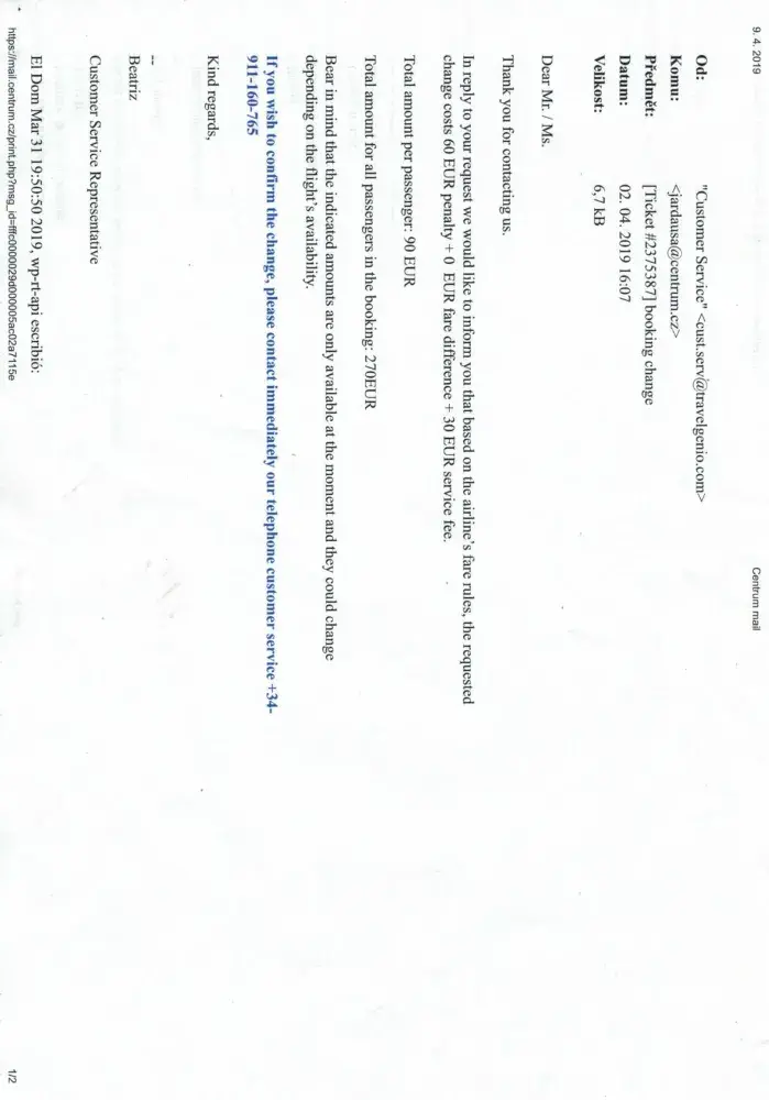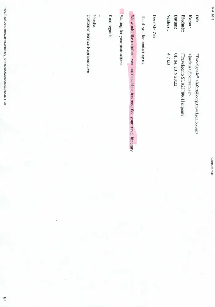 Yesterday l received to e mail by travelenio.com for schedule change-action required re: contact your company at once if not maybe l lost my flights and the amount paid.