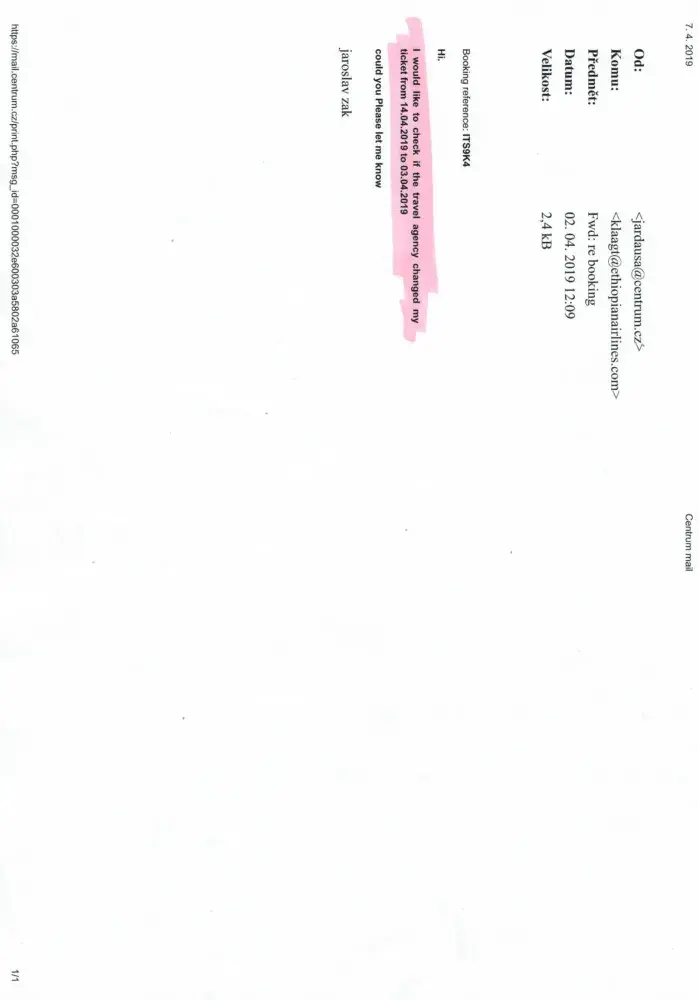 and I sent email that I asked about cancellation of connecting flight and refund.