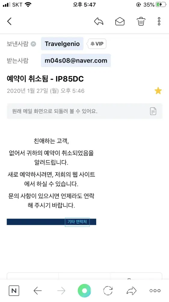 I have to hurry back to Korea today. I made a reservation on the Travelgenio website yesterday afternoon, but I checked the reservation status: cancellation several hours later. I've definitely confirmed that the reservation has been cancelled and I've I had to return home today, so I had to reschedule the same flight on another site and even check in. Because refund is not going on, I checked travelgenio site a little while ago and it seems that cancelled ticket issuance is going on suddenly, so I contact you urgently. I ask for a quick refund.