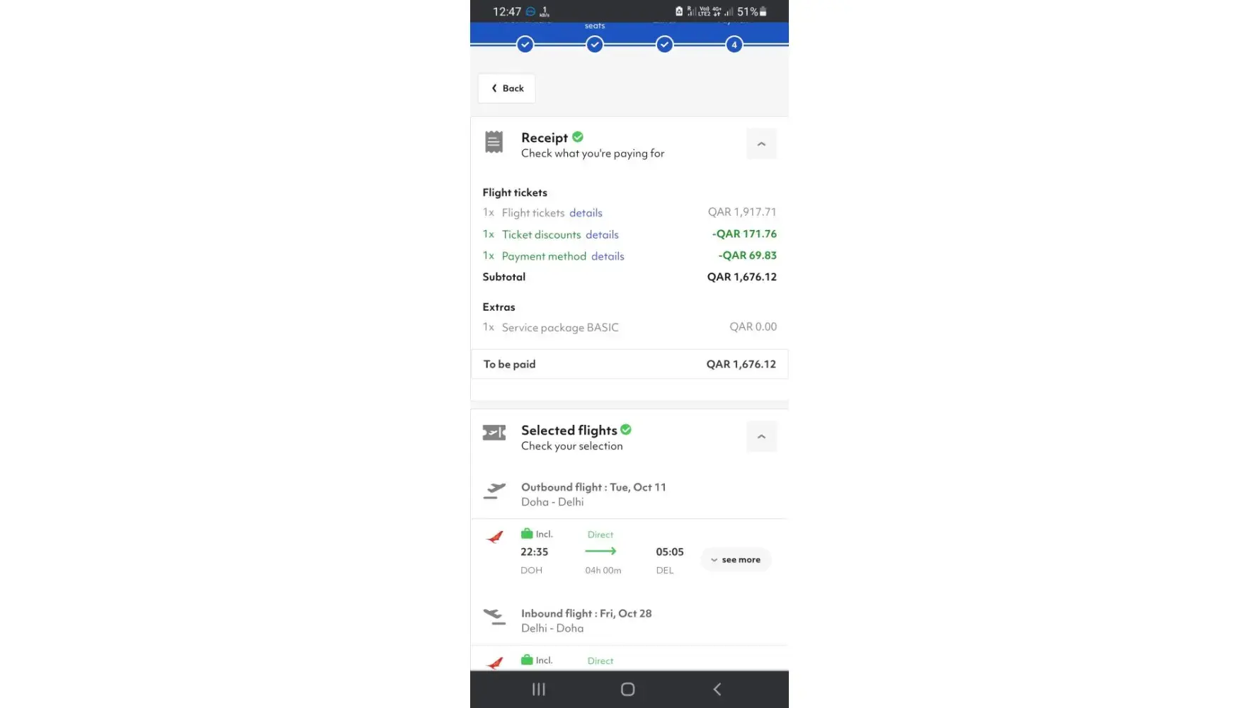 When i book the ticket Doha to delhi 11 to 28 oct that time price difrent and when i payment after difrent price near about 2500 difrent price