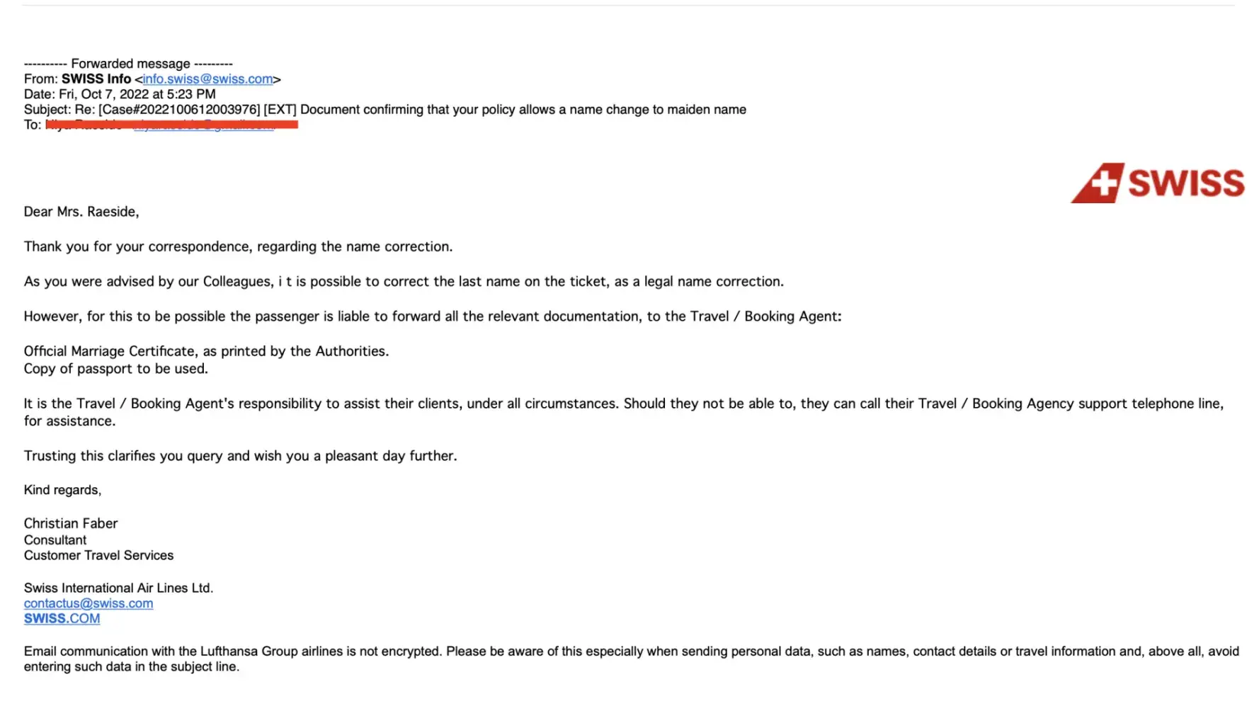 I need to change a maiden name and they said the airline (SWISS airline) does not change the name. HOWEVER they do change LEGAL names as long as you have the necessary documents