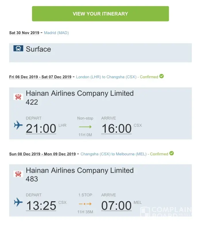 Flight Itinerary: