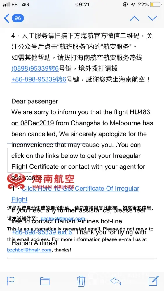 I booked onto a two-leg flight from London to Melbourne via Changsha for December and received an email from Hainan Airlines saying the second leg had been cancelled and that I'd need to contact Travelgenio to reschedule it, except the only problem is every time I call I'm told that I'll be on hold for 3 minutes 21 seconds and then after this time has passed it simply hangs up! I've tried three different contact numbers, all with the same result, and also emailed over three weeks ago to no avail. As it stands, I'm not sure if I can even get as far as Changsha as nobody has issues me with a new booking confirmation. What a colossal waste of £400+.