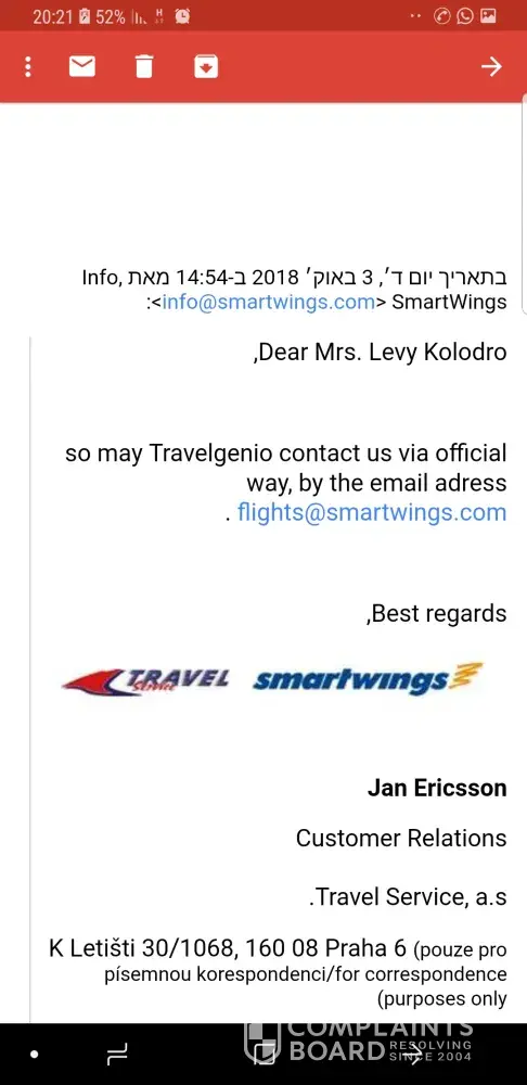 Which email address did you get hold of Travelgenio?