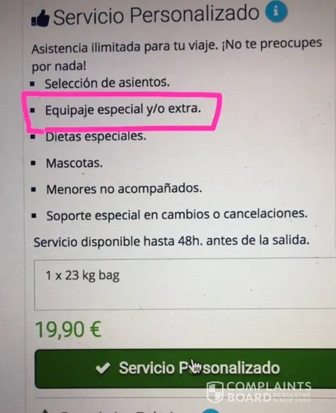 My point is that I paid for an extra service, that I know the airline offers. Travelgenio immediately told me that they can't book it, that I need to pay extra at the airport, and that the money I paid through Travelgenio is not refundable. I am quickly starting to feel like a pretty undesired customer. I bought through Travelgenio many times before, through Skyscanner, because I've never had any issues. I find this issue quite simple, but a the same time quite a deal breaker if I don't get any sort of compensation: either the 20 euros back, or as simple as one 23 kg checked bag in my flight.