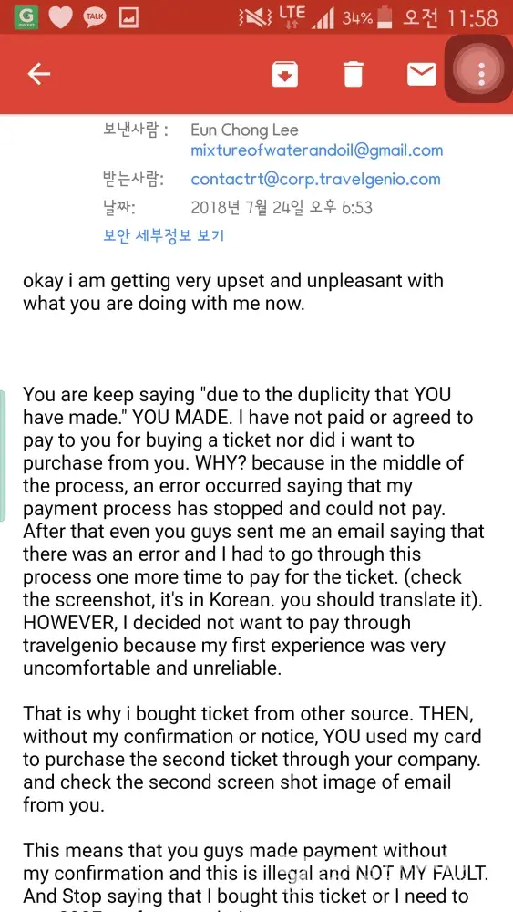 And what makes me more angry is you not replying immediately or solving this problem. Instead, you mentioned that I bought the ticket. I wonder if you even read my email.
