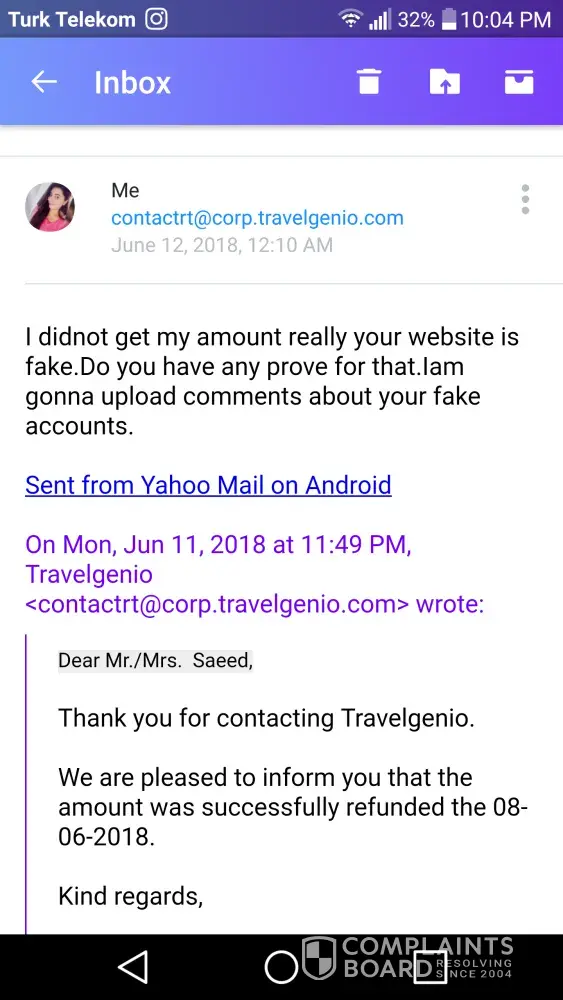 Funny, it takes travelgenio 2 minutes to reply to a complaint but it takes already 3 weeks and dozens of emails to get a refund and they still don't refund and refuse. Maybe spend time on actually running your business then you don't get complaints.