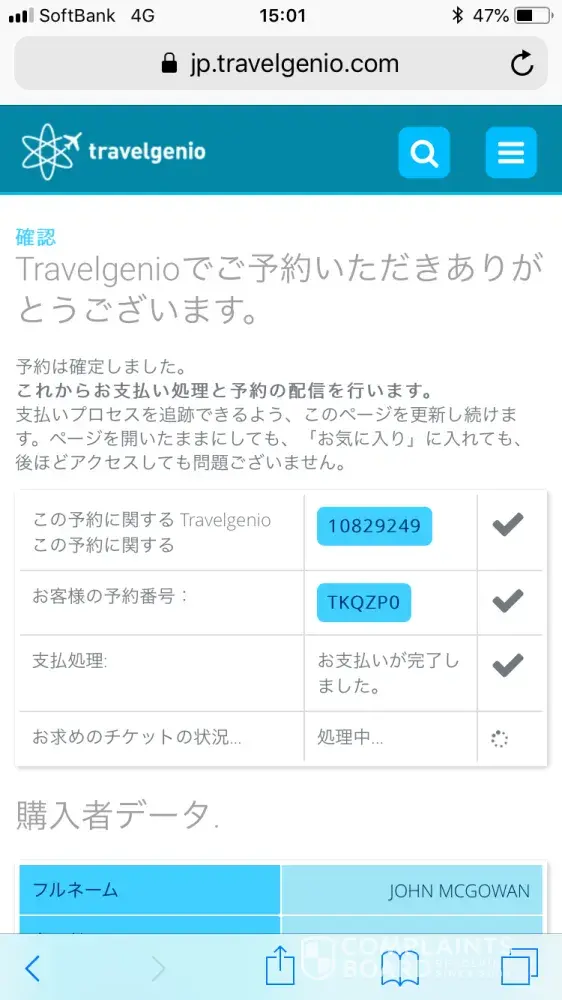 Travelgenio reservation can't be confirmed, but the payment has already been deducted