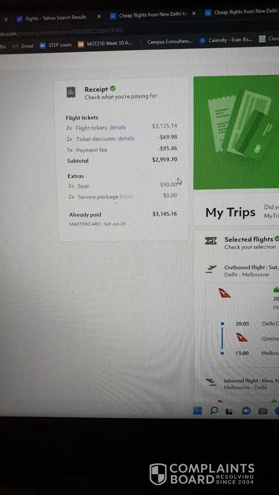 Tickets I booked charged me 1200 more than it showed on the receipt