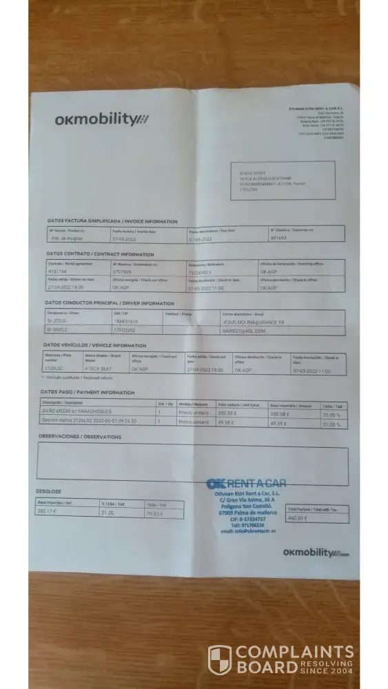 OKmobility n'a pas vérifié et nous a fait payer.