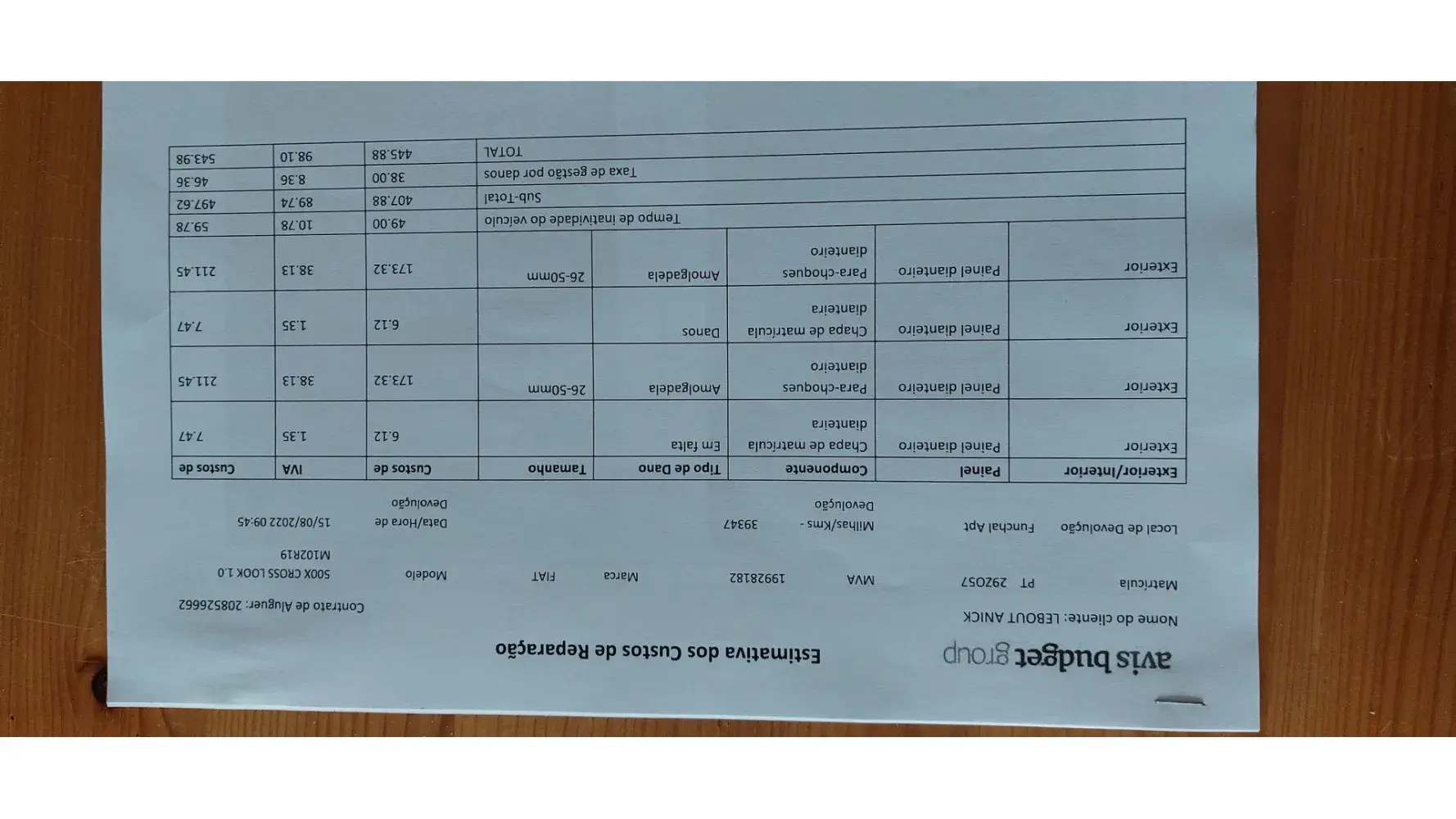 The damage of the frontwindow is not our fault; it happened during the night while street parking in Porto. It was 962,11 euro's (of course we have recipt).
