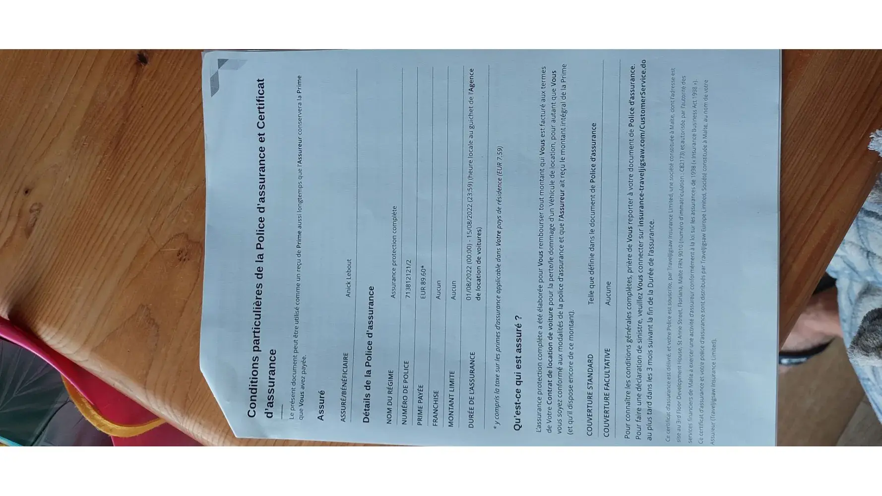 A l'aéroport de Madère le 01/08/22 j'ai loué une voiture chez Avis et souscrit une assurance protection complète (prime payée 89.60 eur) chez RavelJigsaw.