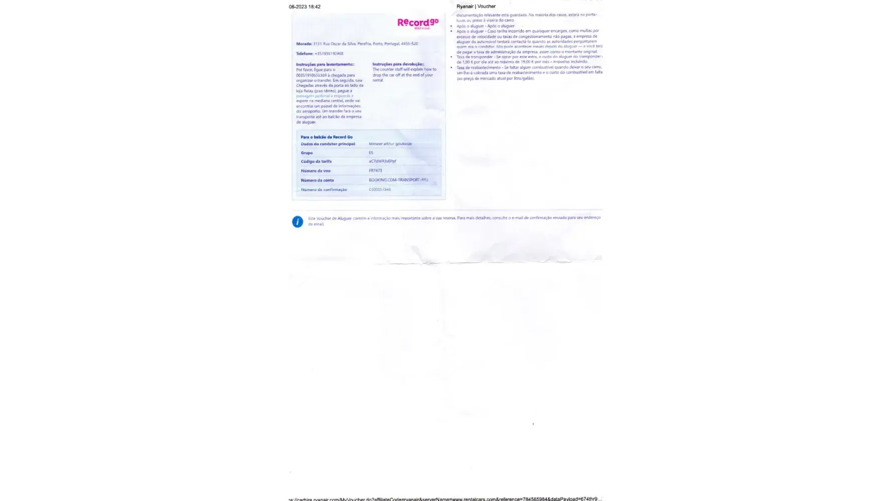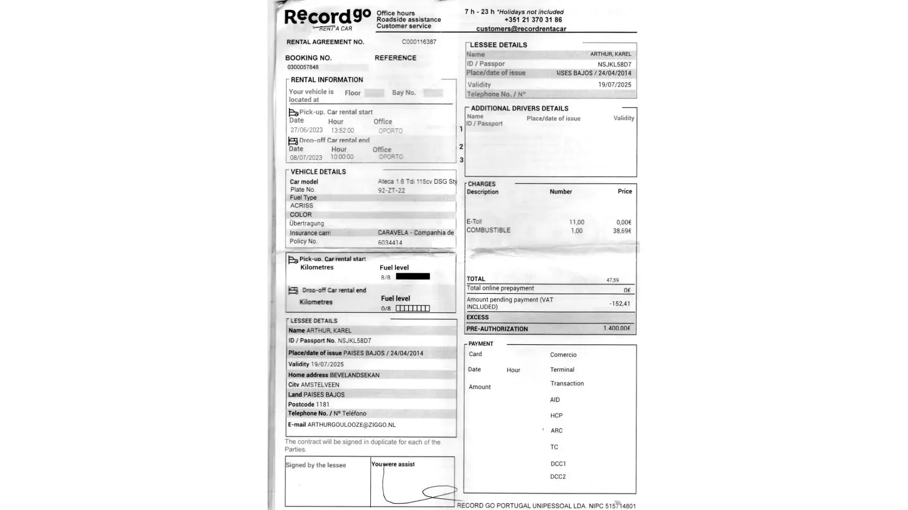 as we rented a car in Portugal by RecordGo, the company you have business with.