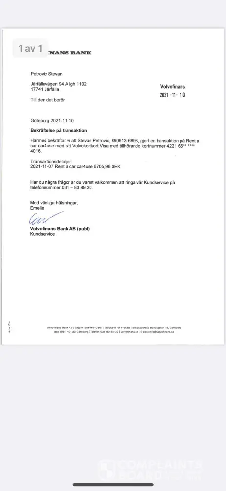 I wish to ask for the reimbursement of the invoice charged by Europcar to me, which is supposed to be done through the above mentioned contract;