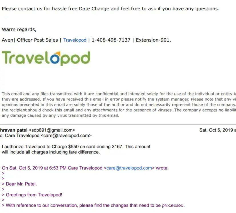 I had worst experience booking tickets with Travelopod. I suddenly had to change my flight dates which was told to be done without penalty however, they said I had misinformation that penalty is by the airline. I understood, the airline requirements but within minutes by the other member of the team, the price was hiked and he told that other member was providing you the wrong ticket. It was very difficult to trust them in the process. They will try to make as much money out of you. They have booked the worst flight tickets and said that I will not have to change the checked bags but that was not true. In the process had to miss my flight as the layover provided was 55minutes. Overall, it better to book your own flights rather than using Travelopod. Worst service providers ever.