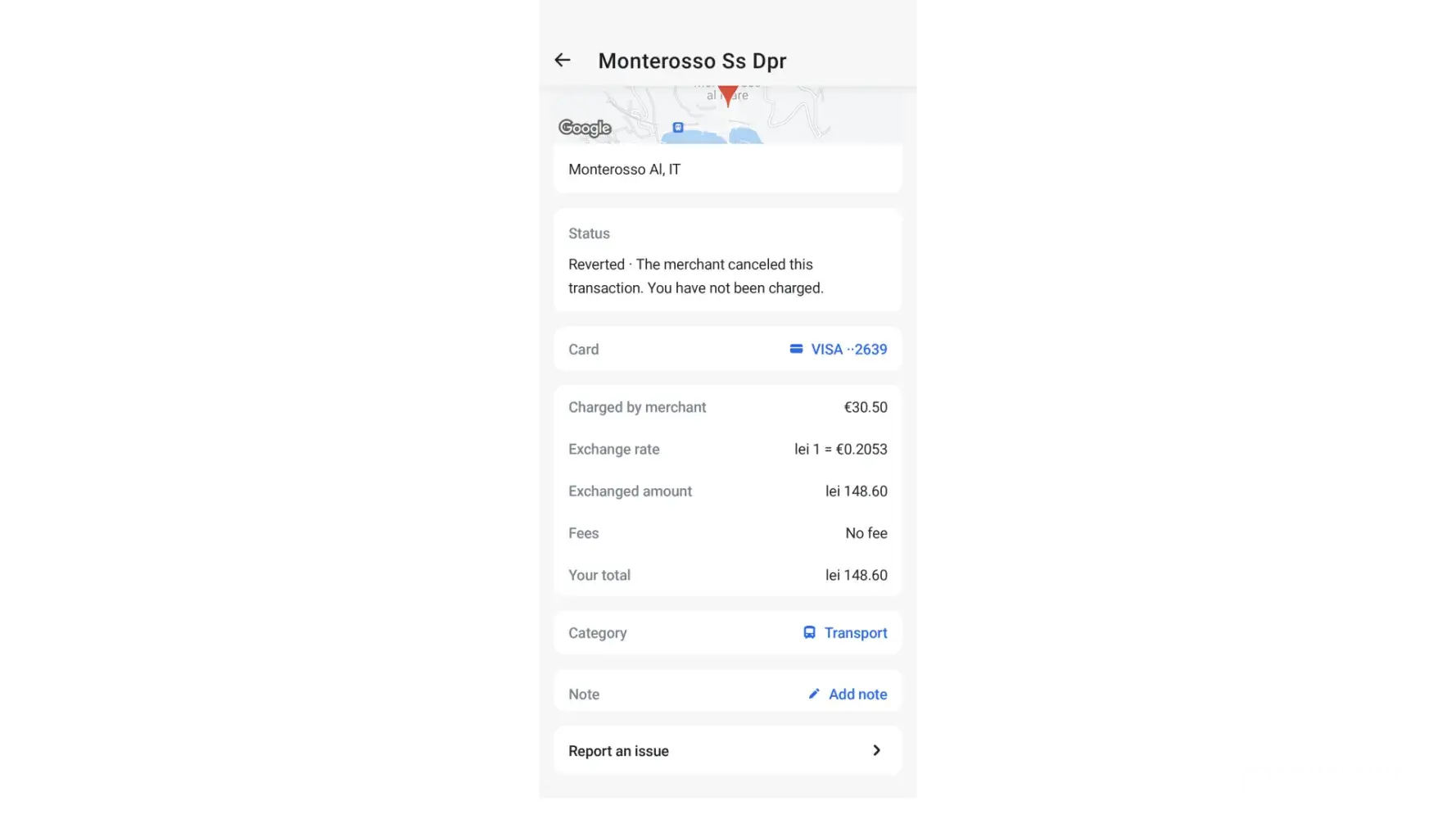 I attached the transaction from Revolut where it is mentioned that merchant cancelled this transaction and that I was not charged but money were taken from my account . On the same transactionyou can see merchant , TrenItalia charged my account .
