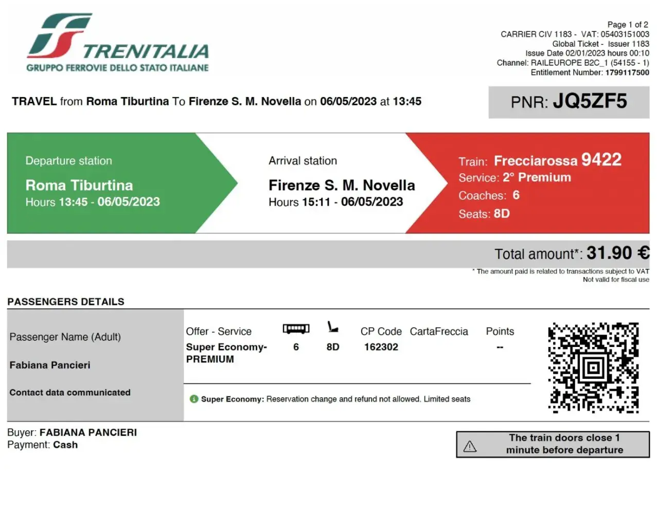 Trenitalia S.p. A. Direzione Business AV Customer Service e Vendita Diretta AV Post Vendita Dear Mr / Ms Leopoldo Niro Thank you for sending a response to our complaint of early April 2023 as per your below mail as late as end Jan 2024! In my complaint, I had explained that there was an error in Trenitalia website which led to the erroneous activation...