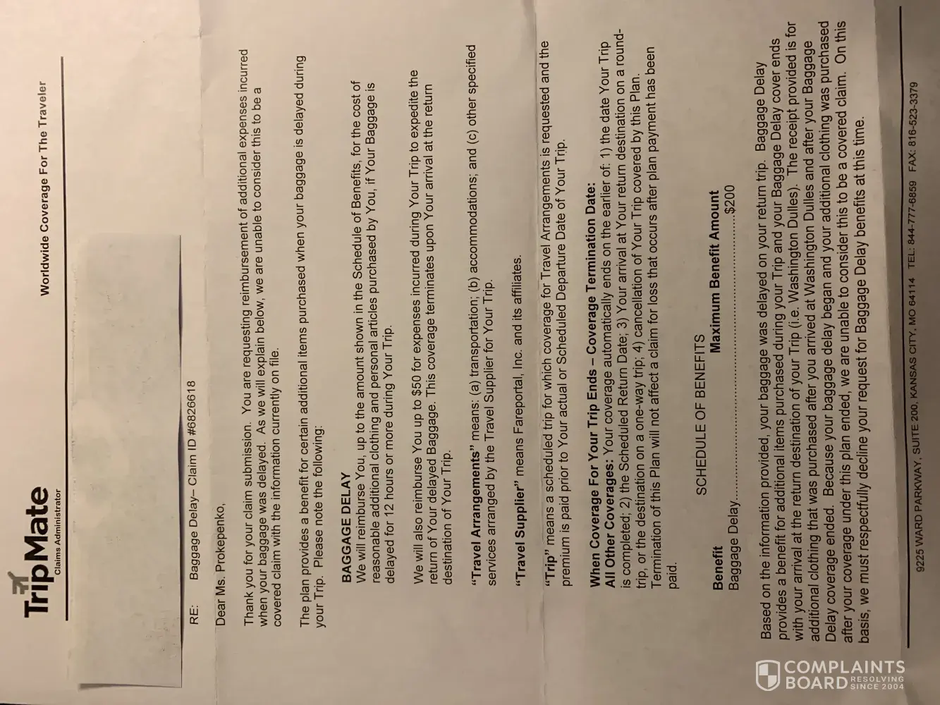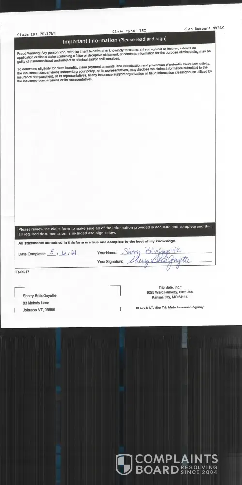 Its horrible experience I ever have dealing with that company.In my opinion its not a business-its a pure SCAM.Their are keeping asking me questions, assining some one to work on my case, but nothing ever been done.Simple scenario when TRIP Mate showing on the front page of the contract for trip delay/Interruption will pay flat $200, but their pay me nothing. After I made complain to BBB, their respond back that will not pay me at all.DONT spend a dime for what that company offering to you, its a SCAM.
