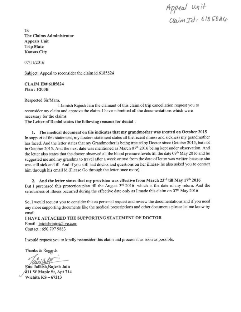 I have purchased a travel ticket to India from Cheapoair. And I had even purchased the travel protection during that transaction for the travel on May 15th. I had to cancel my tickets on May 7th as my grandmom was seriously ill and I had provided all the statements of Doctors. Everything was so serious that I had to cancel my trip. She was continuously falling ill. So, I filed a claim with the same reason. They still denied the claim, telling all weird reasons.