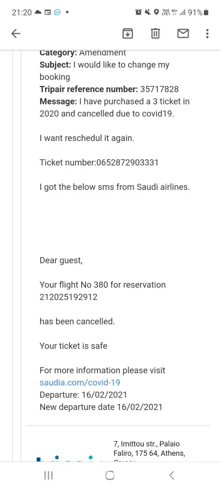 My flight was cancelled due to corona issues a year ago and till today didn't get my refund or or to change the ticket date. from tripair.