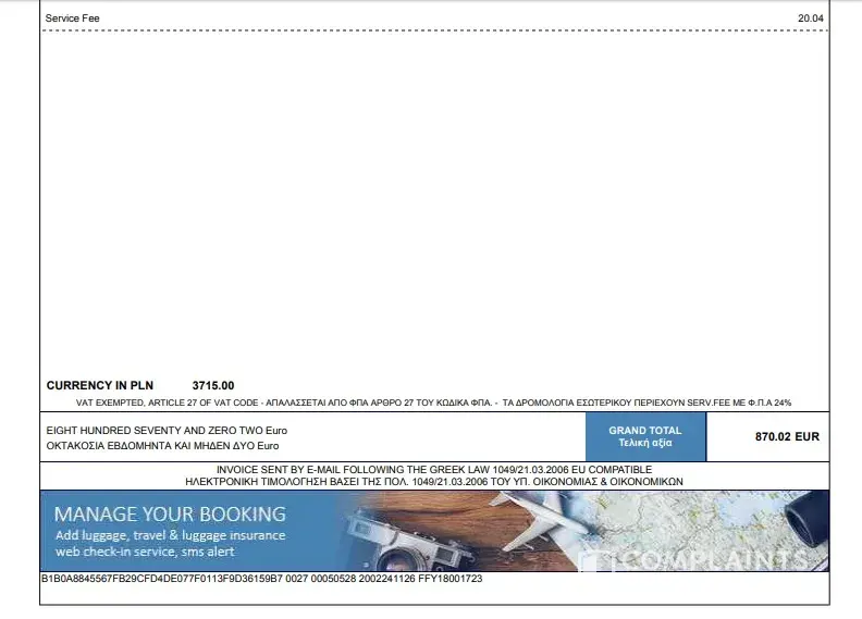 On the 24th of February, I booked a return flight from Melbourne, Australia to Warsaw, Poland. My departure flight from Melbourne was scheduled for the 3rd of April, 2020 with the return flight from Warsaw on the 8th of May, 2020. Please see the flight references below or refer to the attached invoice:
