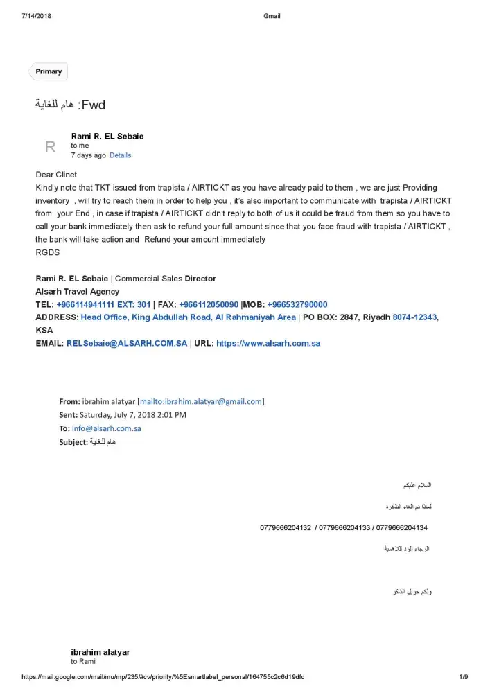 and i contact with egypt air he give me company name Alsarh Travel Agency