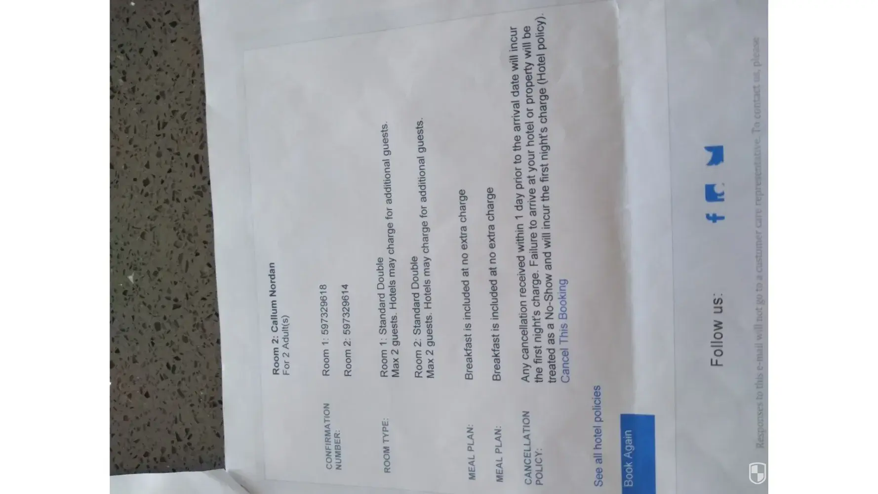 Desired outcome: Refund on hotel stay.
