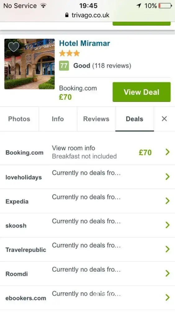 There is an offer on Trivago but when you click nothing happens other than an error message. [protected] david white