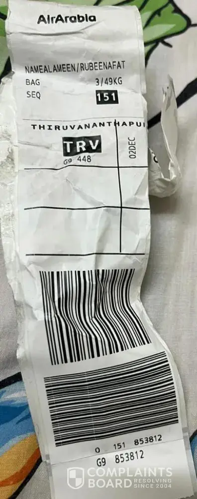 I am Al Ameen, My wife Mrs. Rubeena Fathima AlAmeen has travelled in Air Arabia Aircraft from Sharjah to Thiruvananthapuram, with the Booking Reference Number [protected], has lost the luggage with tha Tag Number 853813.