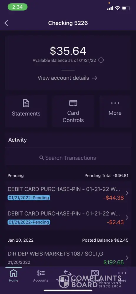 Truist Bank (formerly BB&T Bank) a Cashapp payment i sent is still pendng and so is a Zelle payment I tried to make this morning