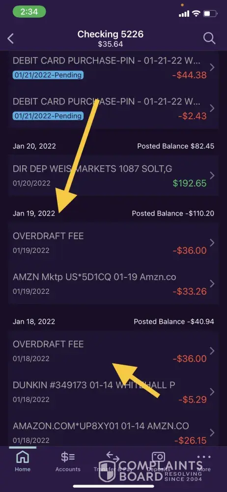 Truist Bank (formerly BB&T Bank) Overdraft