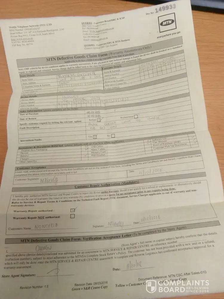 I bought a phone (Huawei y5 prime 2018) at Truworths Canal Walk on the 9th of October 2018. When I left the store the phone was working, the following day the phone was flat and I charged. I realized that the phone was not charging. I returned the phone on the 11th of October 2018 at Truworths Canal Walk, the cashier took the phone and told me that the phone was faulty by the charging place and it needed to be taken to the MTN Service & repair centre and I will receive the phone after a week. I waited with no response from them all I was told that the repairers was busy did not have time to look at the phone. All that I want is a new phone back. They keep on telling me to wait for their response. The store address is Shop 203 Upp & Low and their telephone number [protected].
