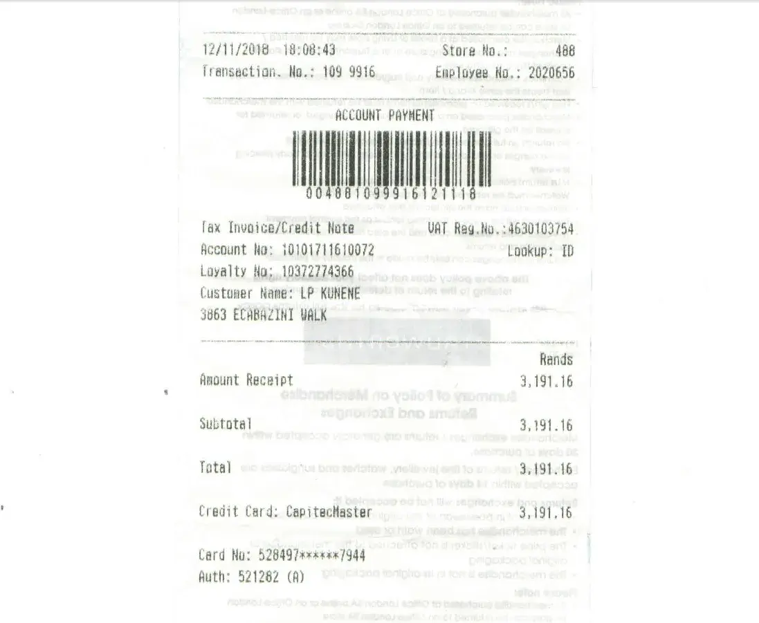 Mr ST Matsila id number [protected], he has no knowledge of the above account which was opened, he was advised by Truworths Centurion to make an affidavit regarding the fraudulent activities on this account.