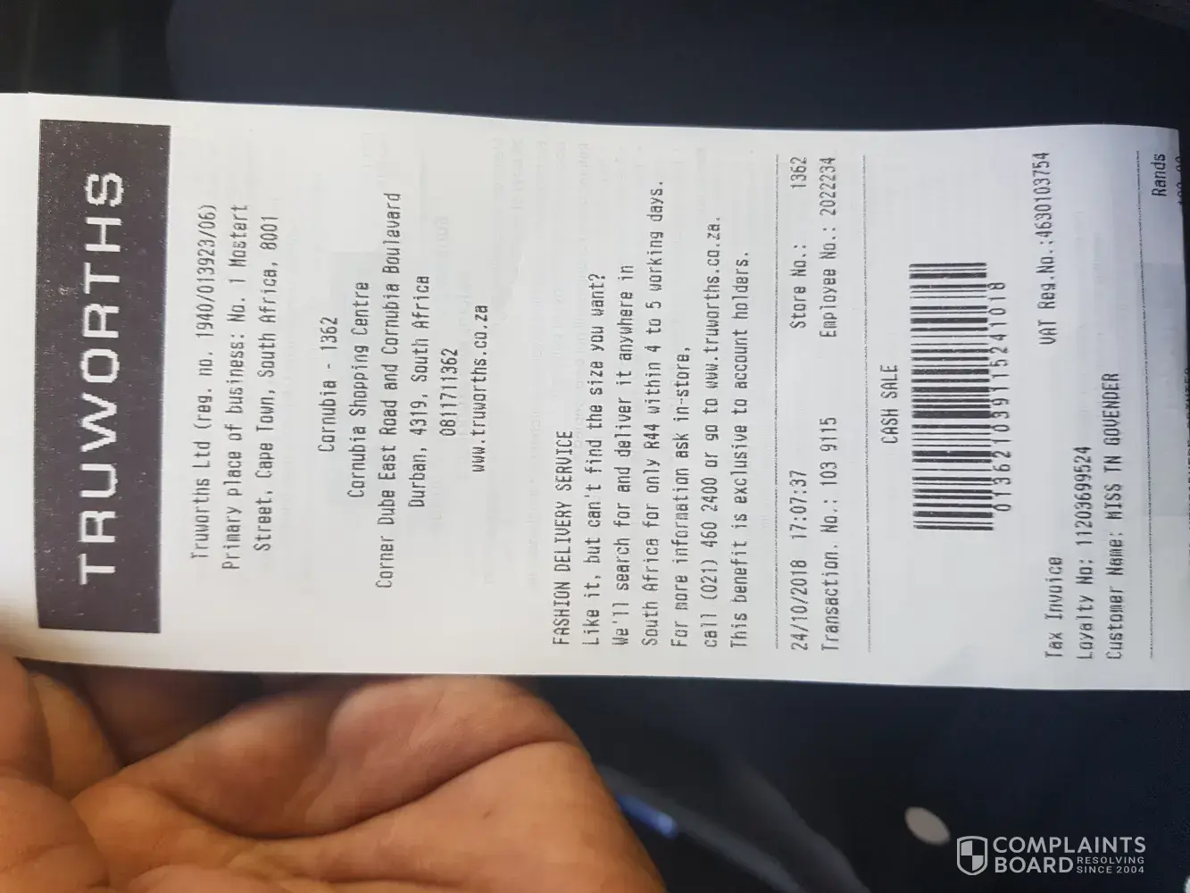 I had recently visited Truworths in Cornubia Shopping center, store number 1362. The employee number is the staff member who assisted me at the cashiers is 2022234. The attitude of the cashier was quite disappointing. Firstly she was confused about her question towards me, regarding the signing up for the loyalty programme. She was demanding for information including my ID number, cell number and name. There was no explanation for the request for my details. She was confused as it was a cash sale, even though my colleague had an account with truworths, who was with me at the time. She cashed the items, and handed over our receipt in an abrupt manner. There was no thank you, please etc. No manners at all. I will be taking this matter up further. Customers require respect, and if staff members are unhappy with their jobs - they should not take out their frustrations on us. I hope that this matter will be receiving the required attention. We did contact the manager of the store who was not helpful with anything.