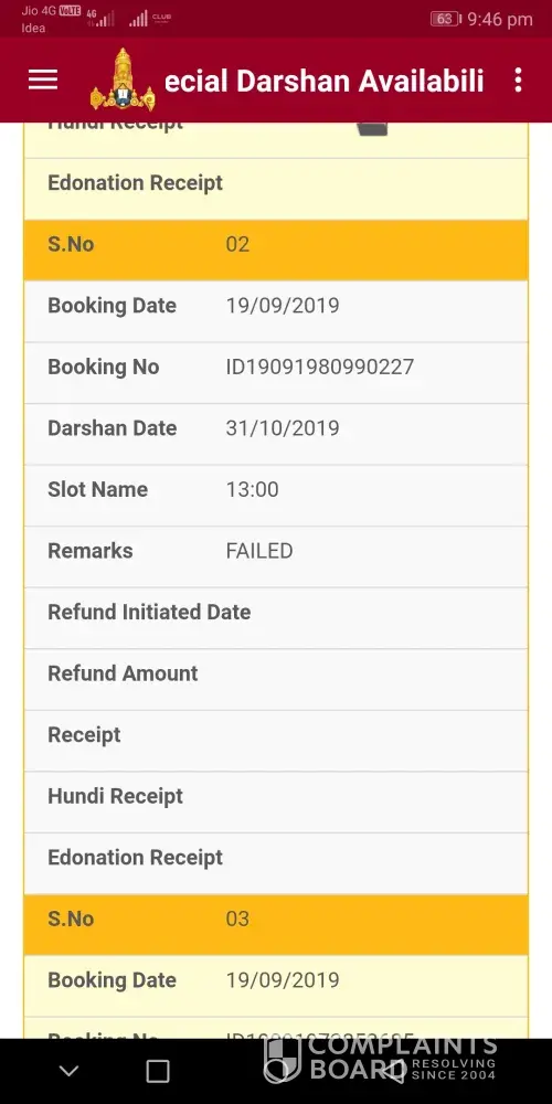 I had booked special entry  dharshan ticket  for 10persons (Dharshana date 19.01.2018 at 15.00) on 12.12.2017. Booking No ID12121730179777. But as the transaction was stopped in the between. and status was "refund". So please refund my money 3031rs. It had been already 36 days passed. there is no information from  your  side. Please  refund it as soon as possible and do response to this mail.
