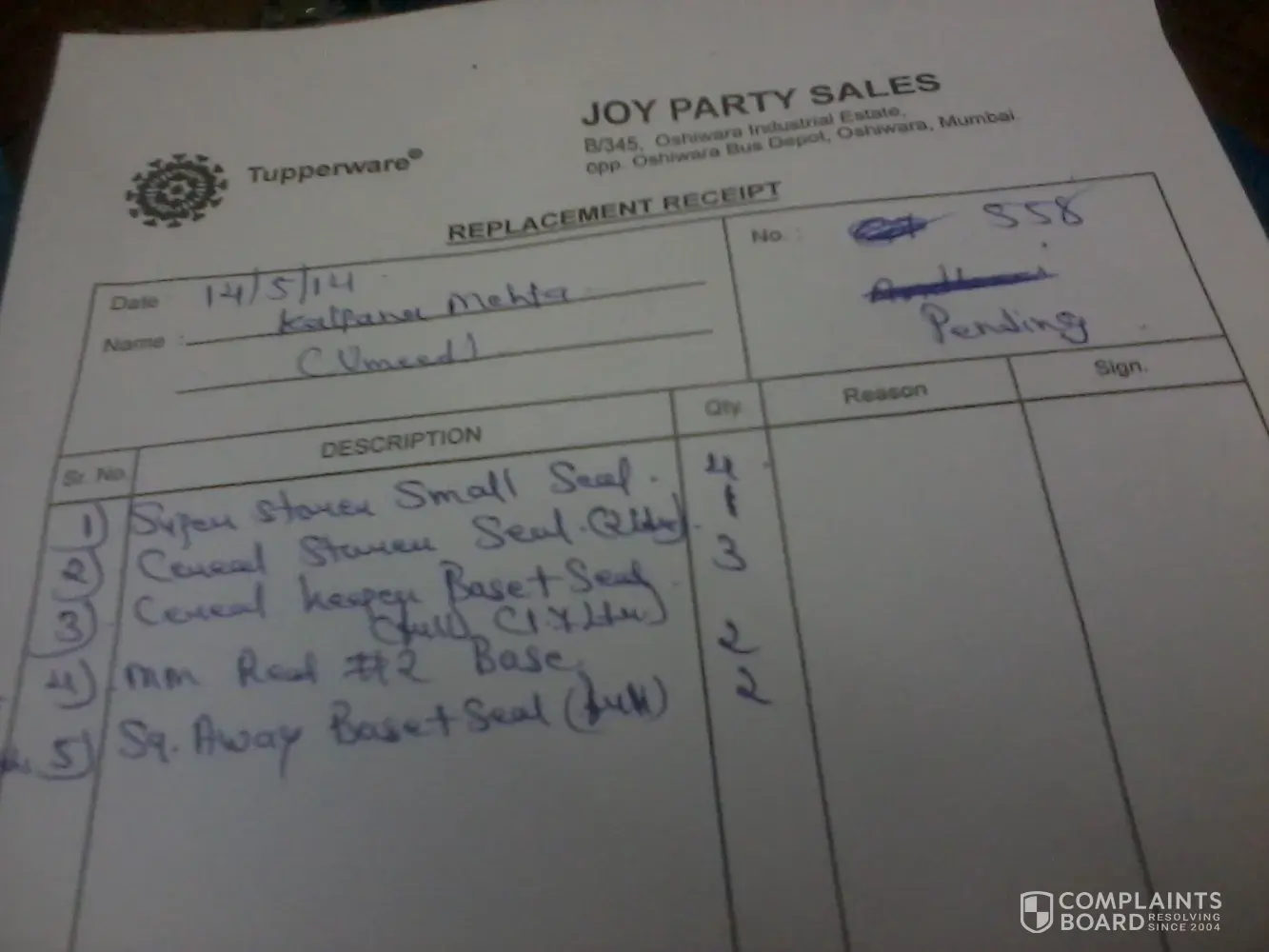 We have given lot of replacement since one year we have not received the same pl check the same even spares takes lot of time what is the reason behind this. when ever we ask they say the products have not come. Why such a bad response from tupperware.