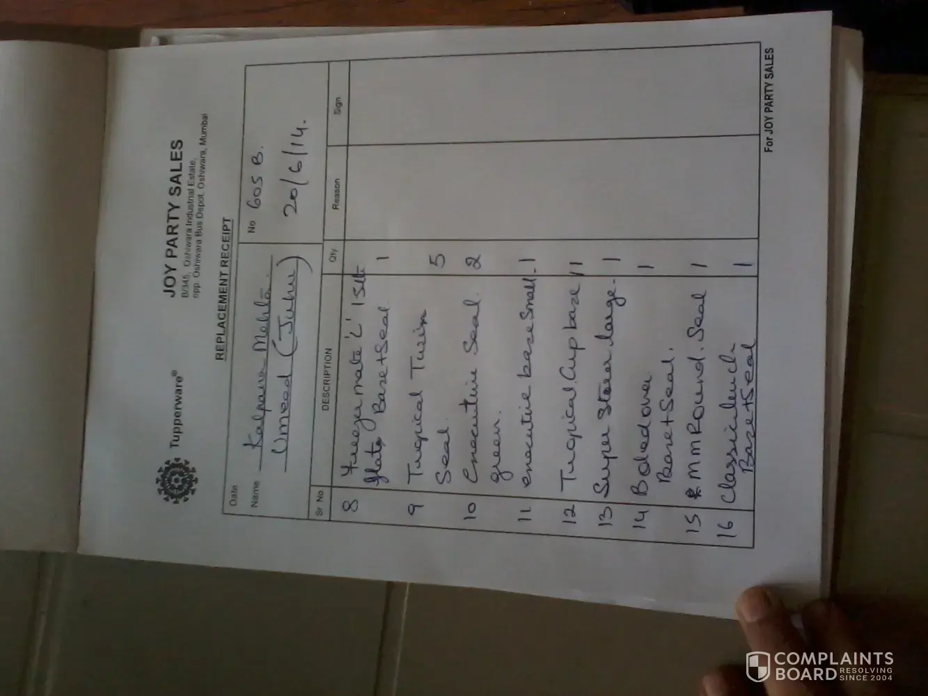 I request Tupperware either to replace my products at the earliest or return the amount I spent in buying those products.