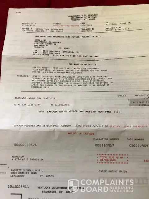 I received a letter from the Dept. of Revenue for Kentucky stating that I owe $338.78 from 2016 State return. The explanation I received is that Turbo Tax automatically filled out a schedule M for pre-tax savings while working on my return. My company, Meijer, does that all year long so now this looks as if I were trying to claim it twice. The fact is I...