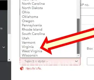 Washington state not on dropdown list to choose from among the United States