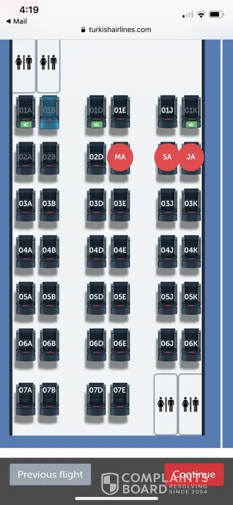 I am also attaching the current booking of the seats. You can see that they put my son alone while I originally put him between his father and I.