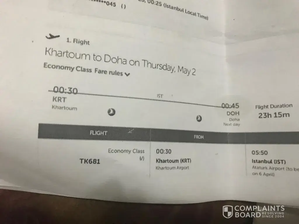 I booked for my family on may 2nd from Khartoum to Doha via your airlines, TK681, with a 10+ hours connection period in Istanbul Airport. Basically I though there will be provision of hotel as per the norms and tradition of decent service providers in this field. They were not allowed in. They have no money and no guidance as how to get food throughout this long period . My wife and three children had to go through it all. further, the flight from Istanbul to Doha, TK780, was delayed for around 4 hours. Only then, when complained to the officers they gave some coupon for food. On arriving at Doha airport, after all of this struggle, one bag was found missing. This needs to be compensated fairly as all of it happened because of your services.