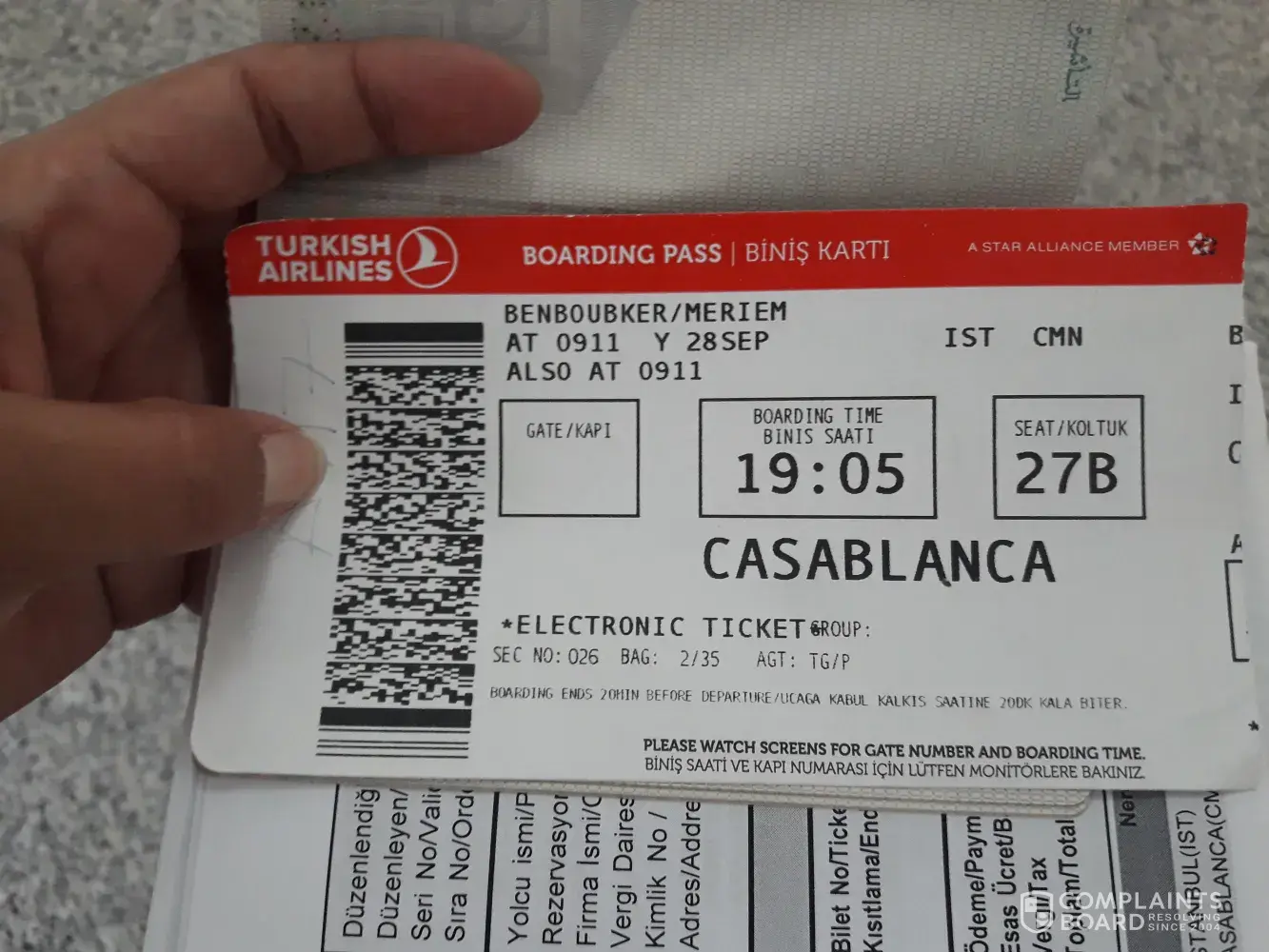 My trip was from Antalya to Casablanca with a stop at