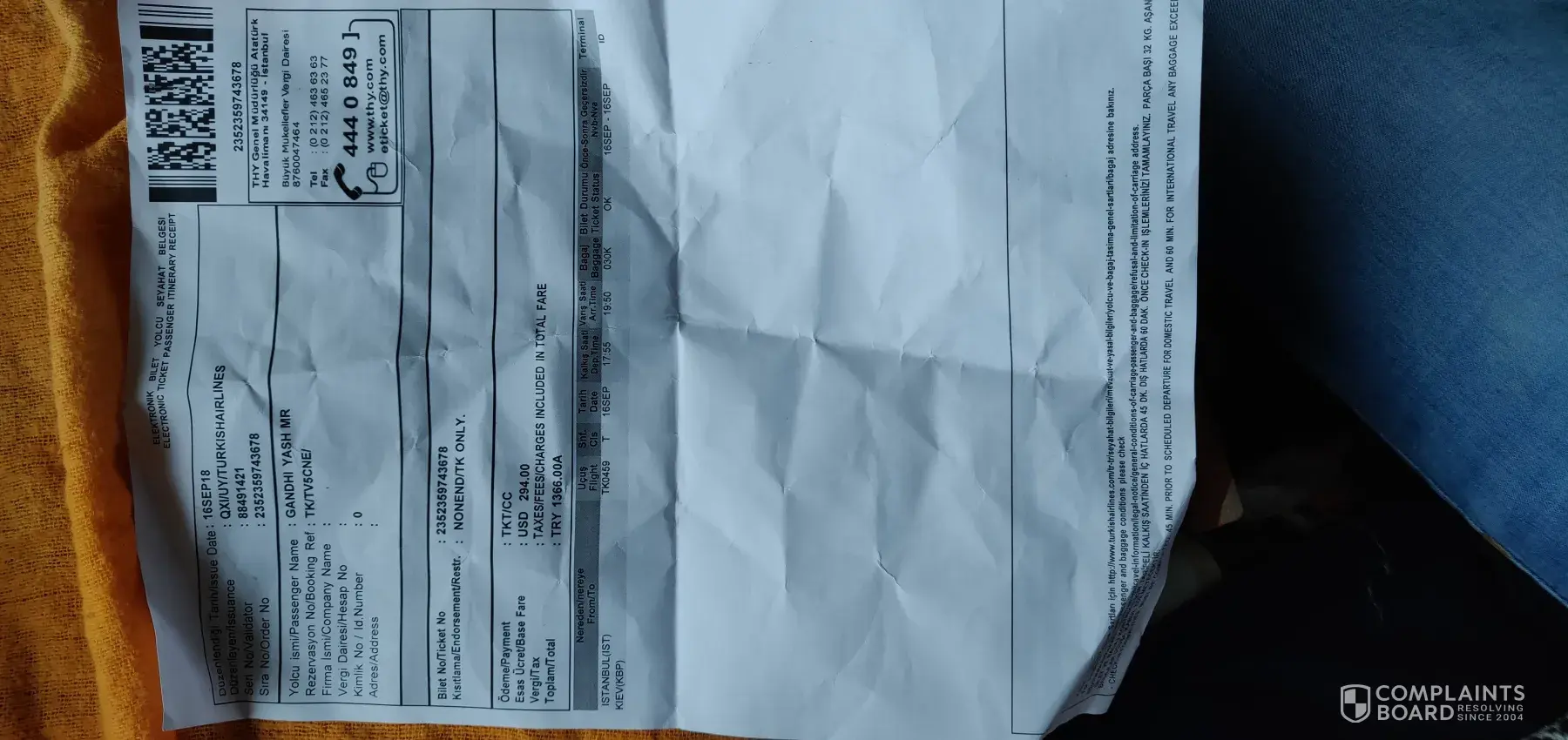 because Turkish Airlines or Later on Etihad Airlines didn't want to make me new