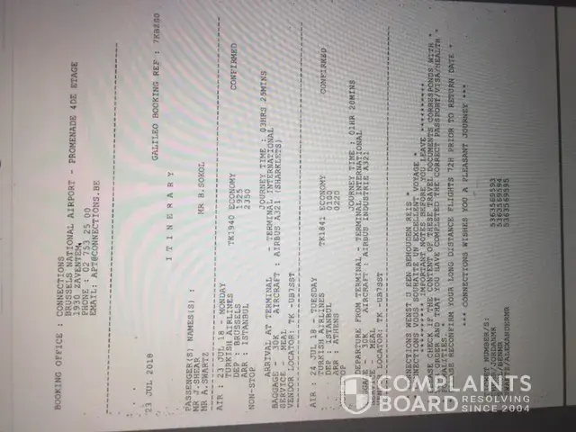 -booked flight from Brussels to Athens, transferring in Istanbul, Turkey