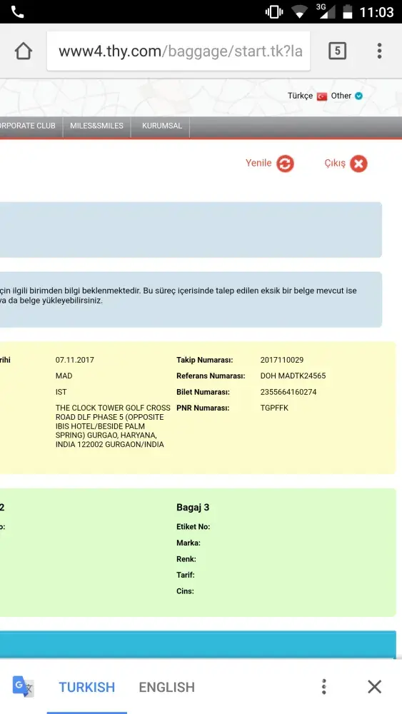 I am kesho yadav I was traveling on 7th November 2017 from New Delhi to Madrid from Turkish airlines my ticket no [protected], PNR TGPFFK & flight no.TK717&TK1859.